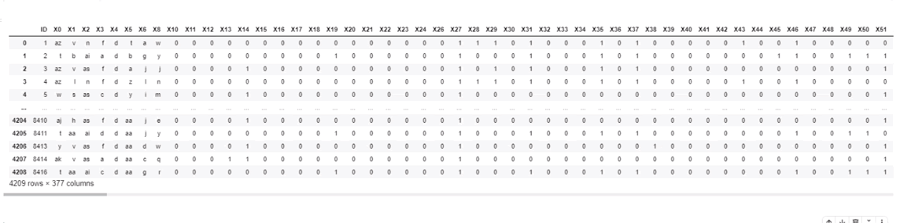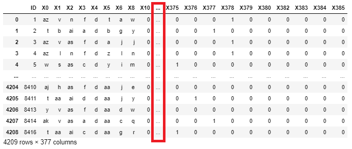 행은 4209개, 열은 377개로 중간에 ... 표시로 생략되어 있음을 알 수 있다.
