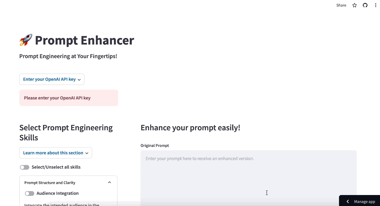 Welcome to Prompt Enhancer, a streamlit-powered application designed to improve your prompts effo...